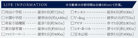 ☆向山小学校まで徒歩約9分 ☆中部中学校まで徒歩約18分 ☆春日保育園まで徒歩約11分 ☆寿泉寺幼稚園まで徒歩約7分